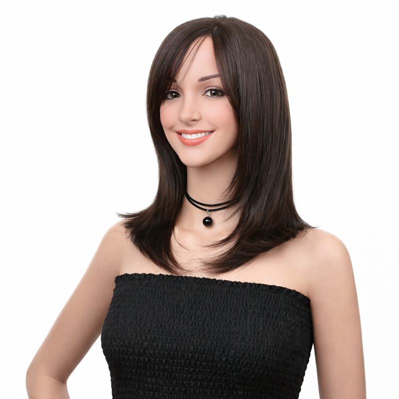 Premium Synthetic Fiber Lace Wig- Linda 16 INCHMono Wig met natuurlijke uitstraling en licht draagcomfort