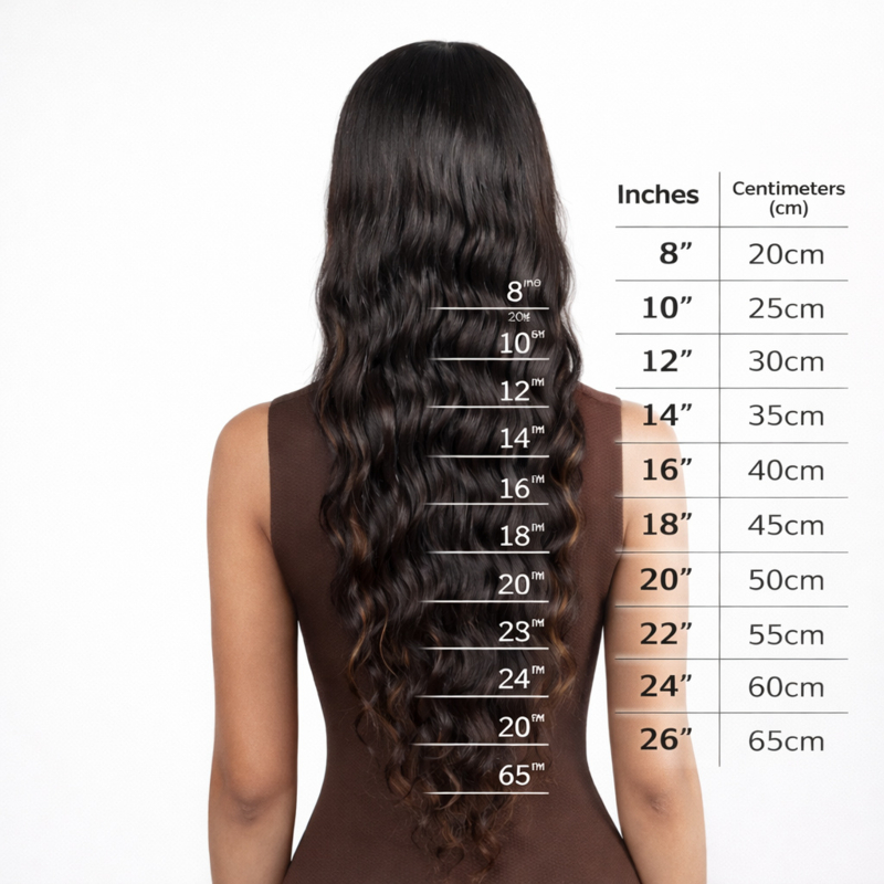 *Alle bovengenoemde inches/centimeters van de lengte van het haar zijn op basis van voor het inzetten van de krul/slag gemeten