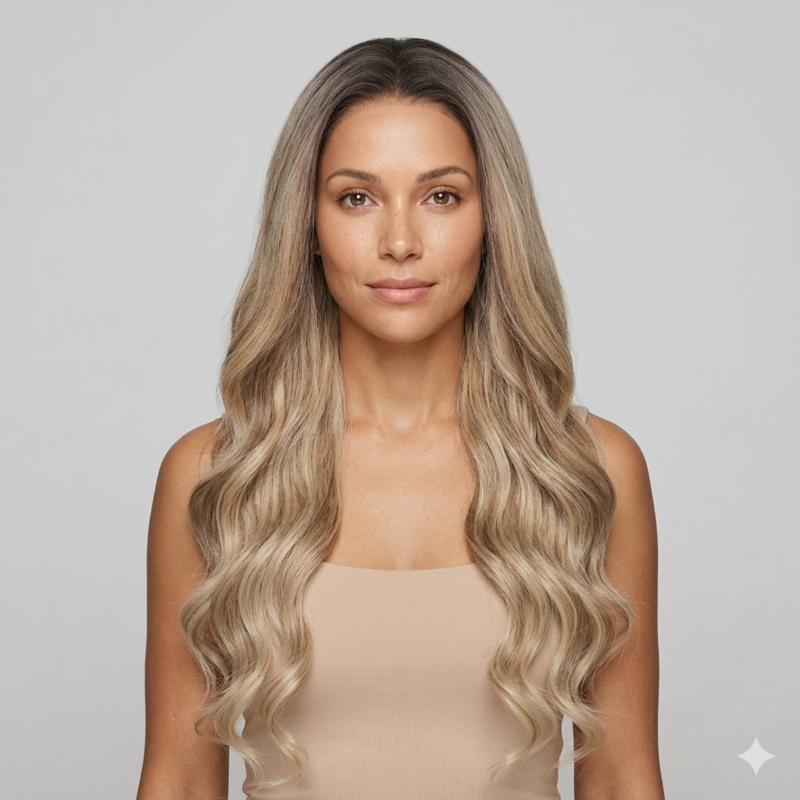 Lang en golvend model in een trendy blond balayage